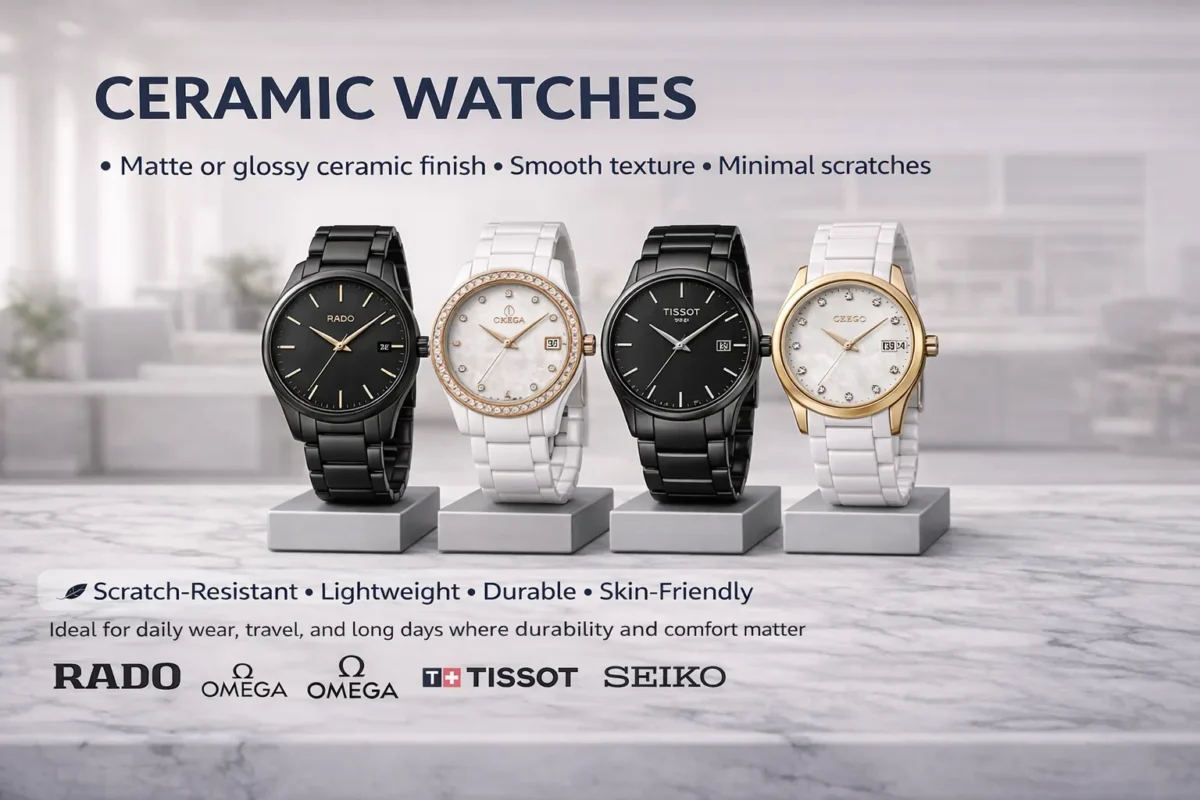 Ceramic watches are scratch-resistant, lightweight, and skin-friendly, making them perfect for long-term daily use.