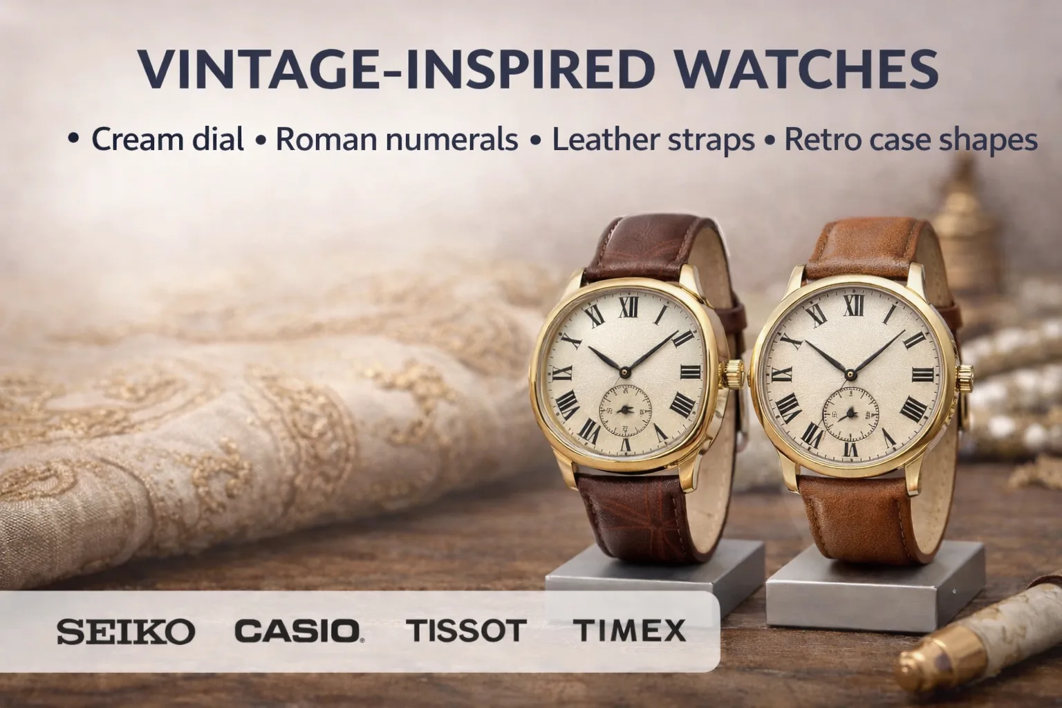Leather straps, warm tones, or gold accents match perfectly with ethnic and formal wear.